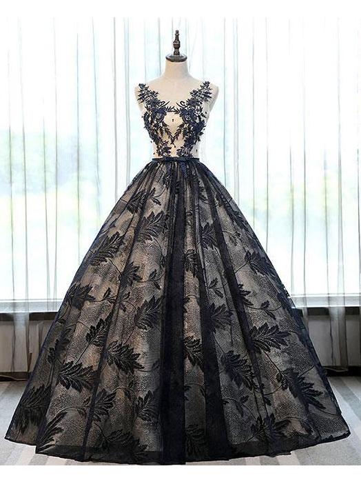 New Ball Gown Black Lace Long Prom Dresses With Appliques OK897
