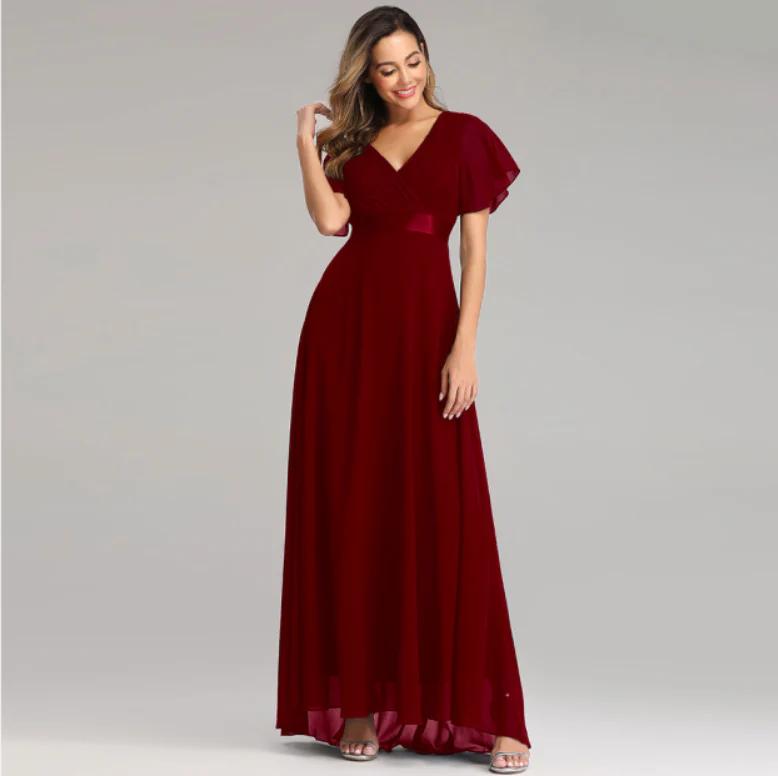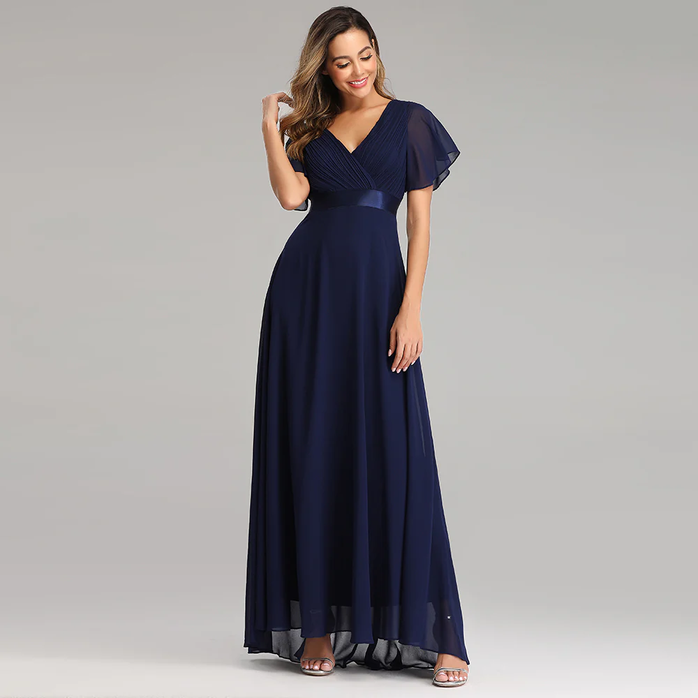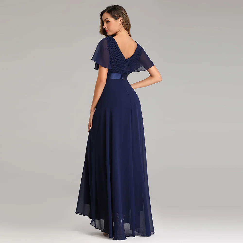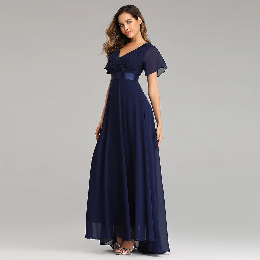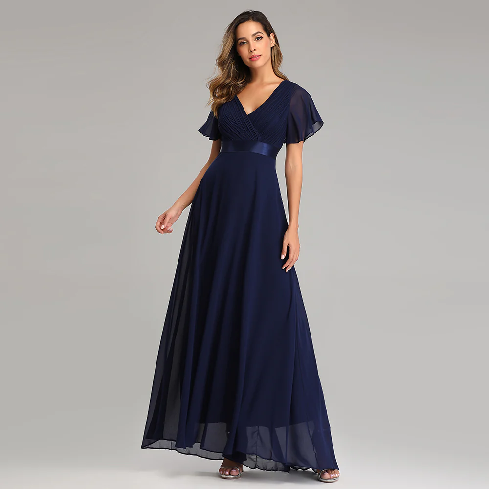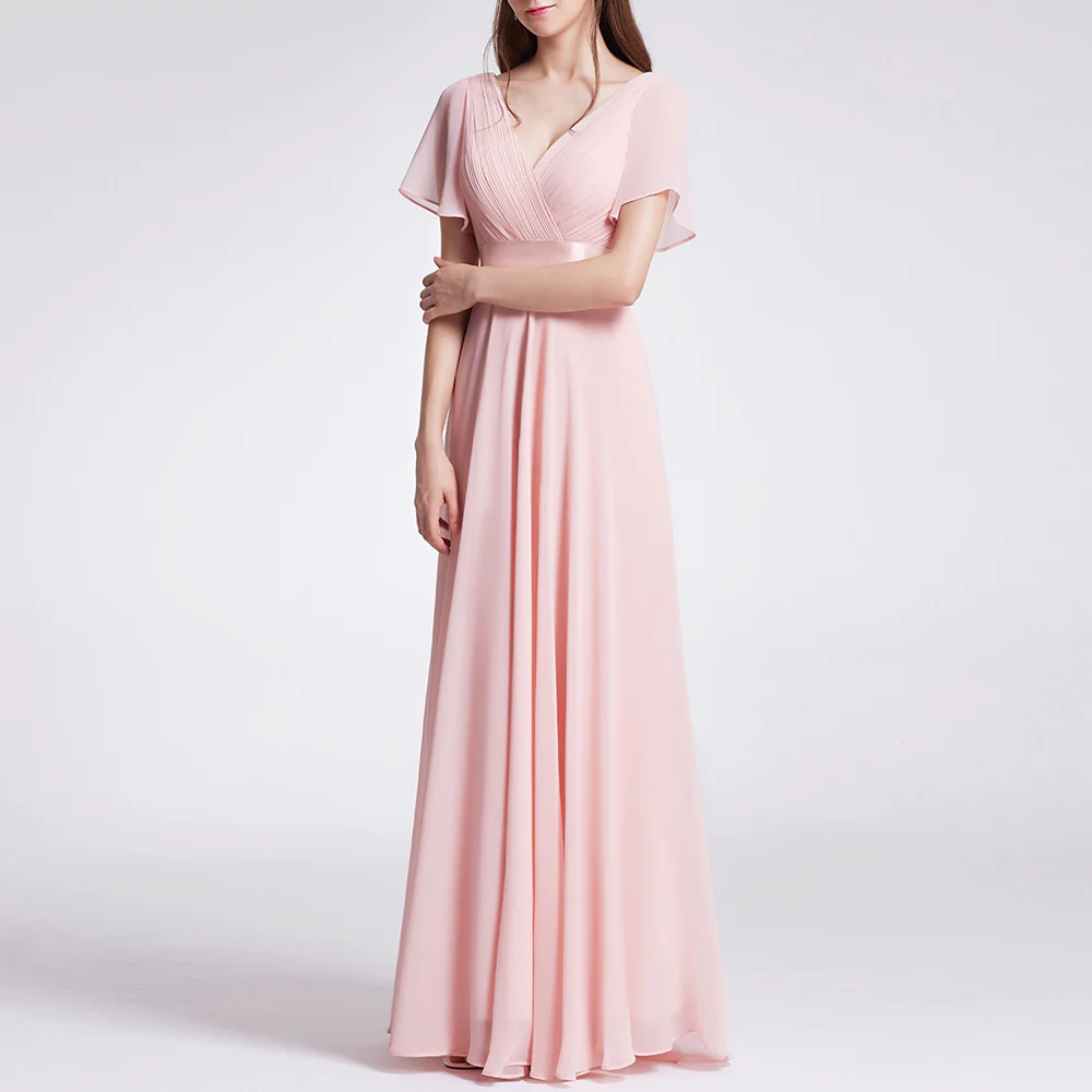 • A Line Chiffon Short Sleeves Long V Neck Prom Dress XU90812