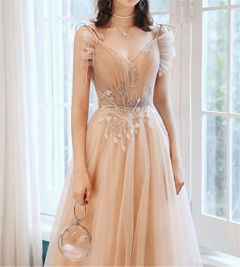 A-line Long Tulle Evening Party Dress Fairy Princess Prom Dress Women Custom Dress OKV83