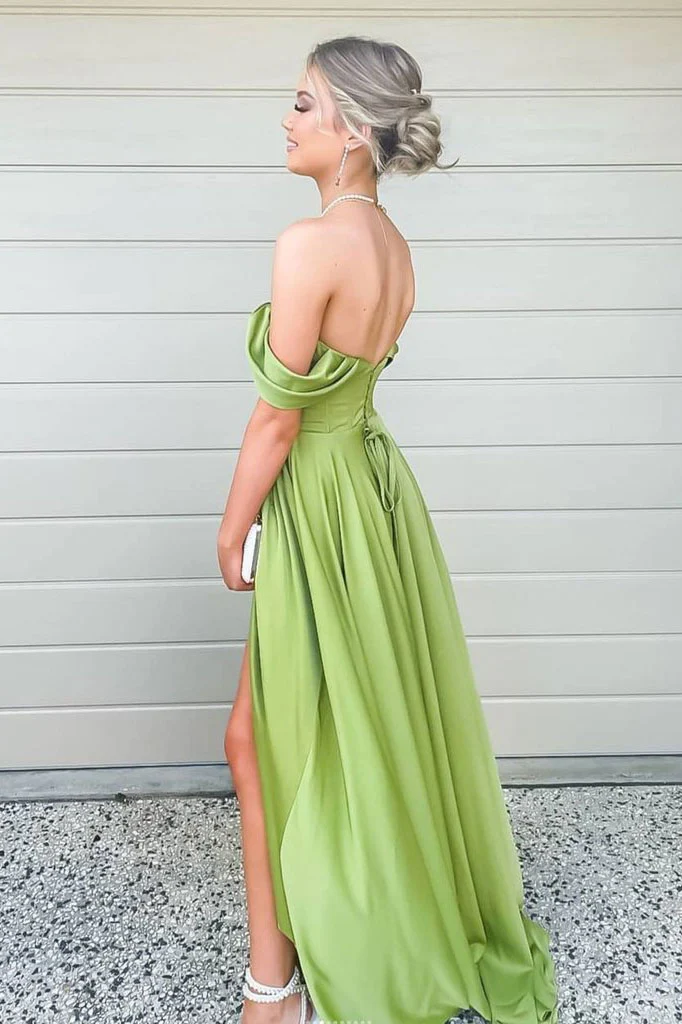 A Line Off the Shoulder Satin Long Prom Dress Simple Evening Dress OK1182