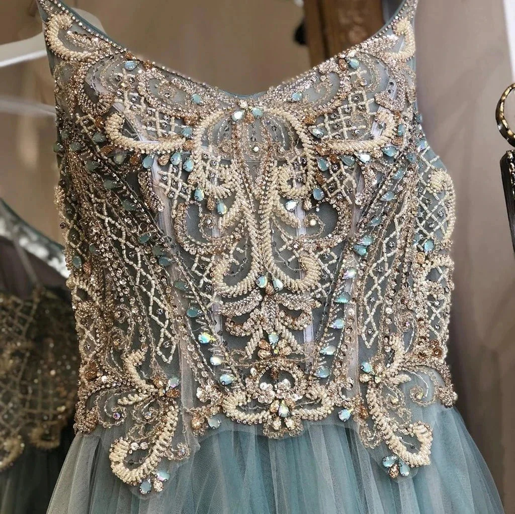 A Line Spagahetti Straps Sweetheart Beades Long Prom Dress Formal Evening Dress OK1376
