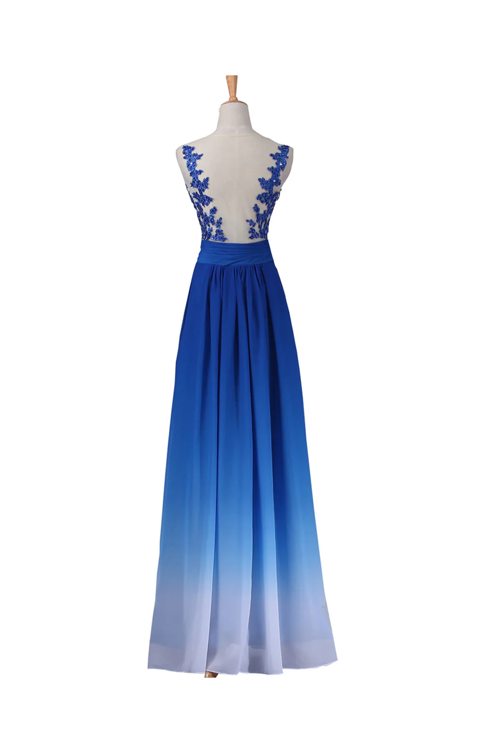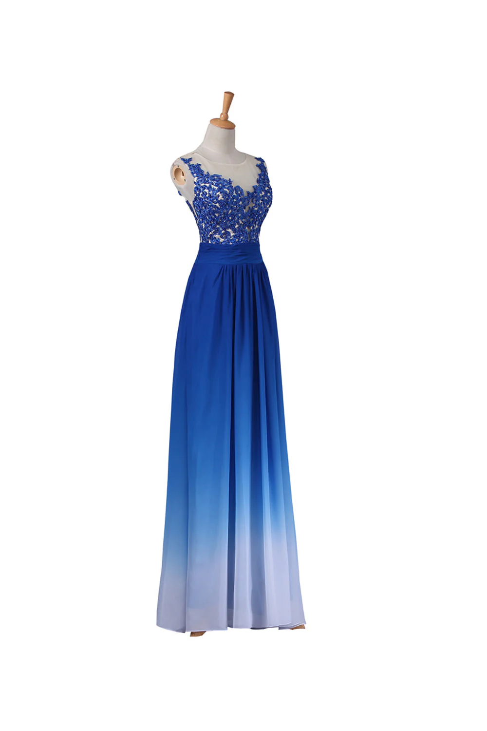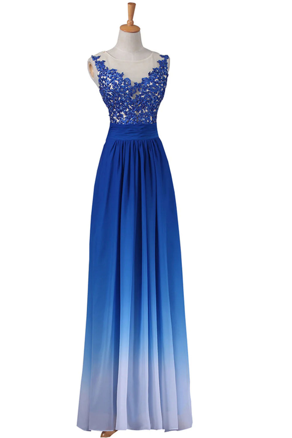 • A-line Strapless Floor Length Royal Blue Ombre Chiffon Long Prom Dresses K143