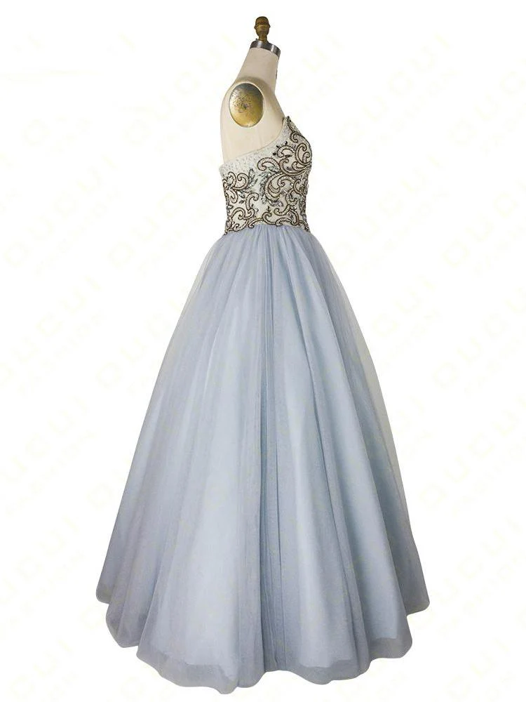 A-line Sweetheart Beaded Light Blue Long Prom Dress Unique Formal Gowns OKR55