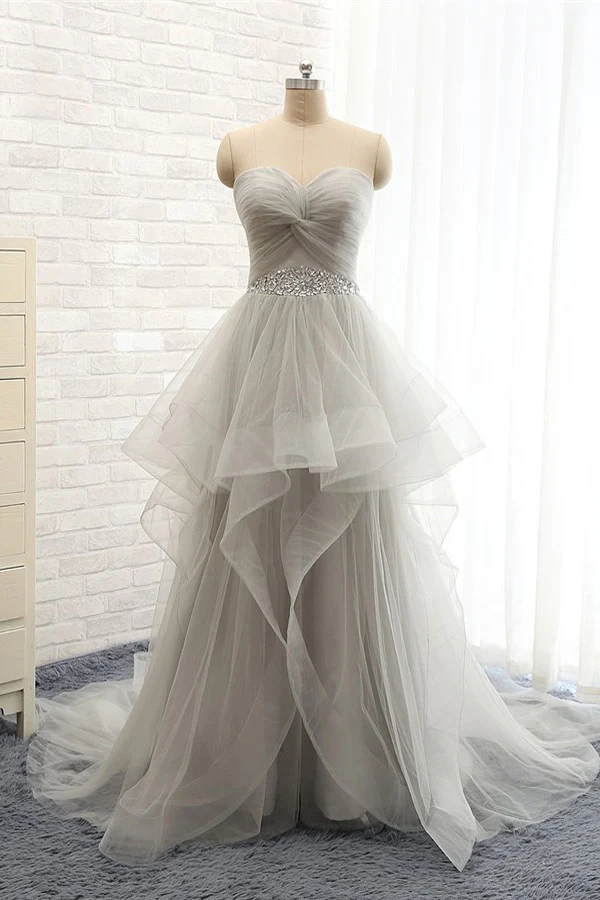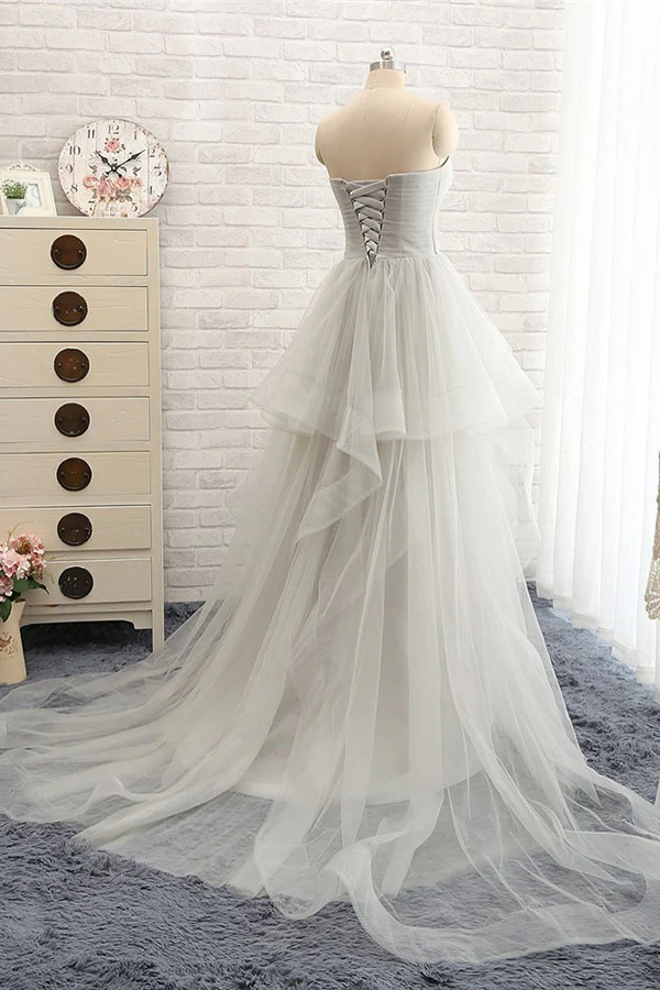 Back Up Lace Strapless Beaded Sweep Train Prom Dress ED0999