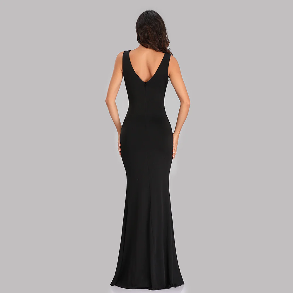 • Black V Neck Long Mermaid Prom Dress With Slit XU90817