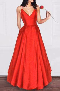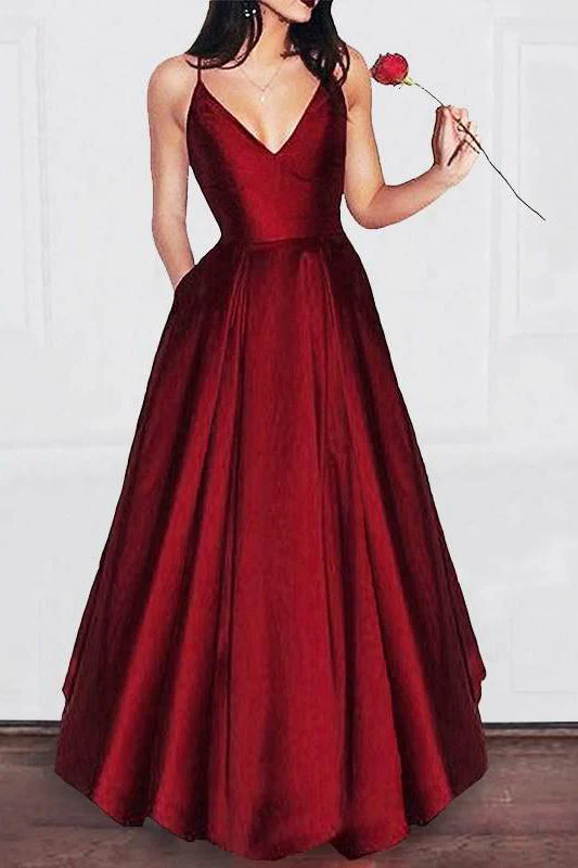 • Charming A Line V Neck Satin Spaghetti Straps Long Prom Dresses,Girls Graduation Dresses OKB29