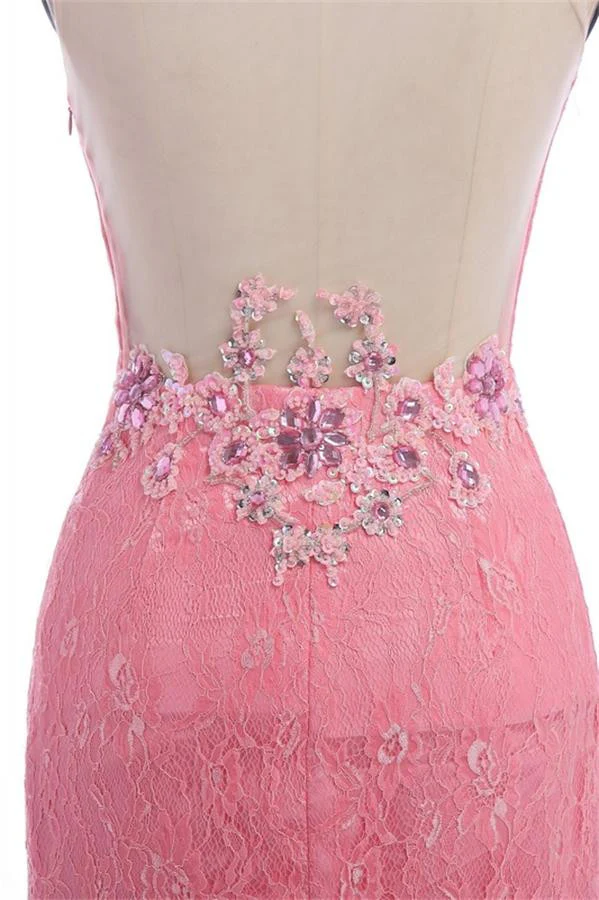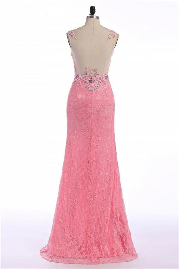 • Charming Lace Mermaid Font Split Long V-neck Prom Dress K103