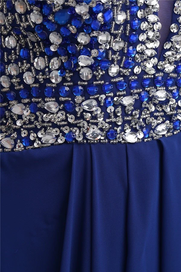 • Chiffon Beading Royal Blue V-neck Long Elegant Prom Dress K619