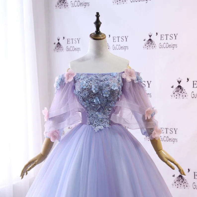 • Custom Women Prom Dress Ball Gown Long Quinceanera Dress Floral Flowers Prom Dress OKV85