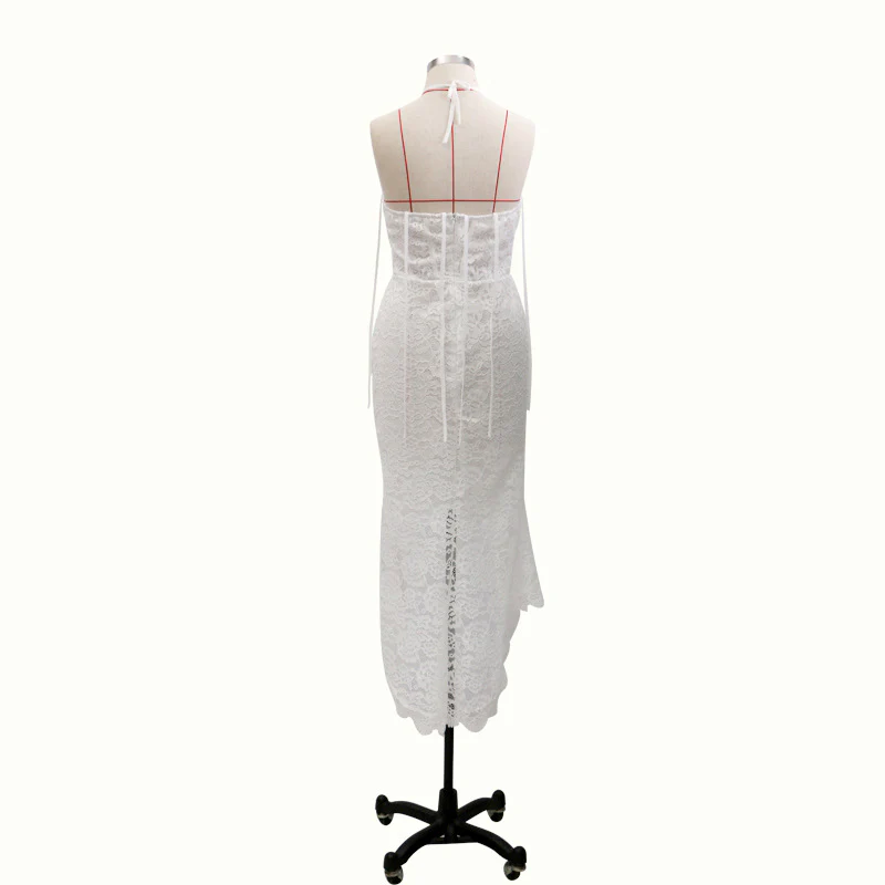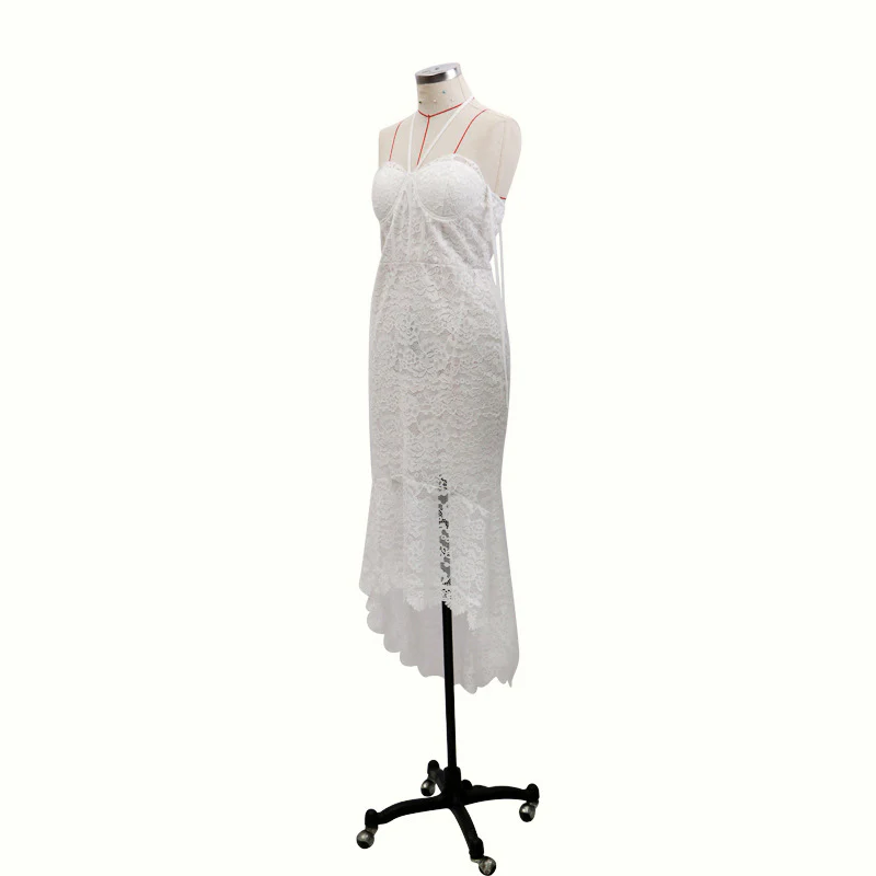 • Elegant Lace White Sheath Prom Dresses, Lace Simple Wedding Dress OKP70