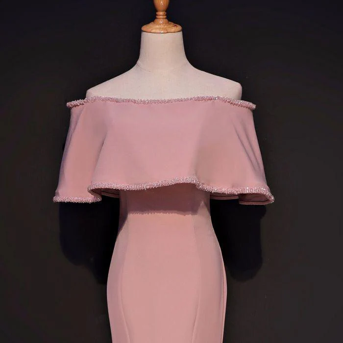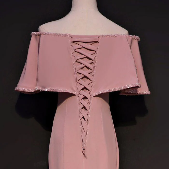 • Elegant Trumpet Mermaid Off-the-shoulder Floor Length Pink Prom Dresses With Slit OK631