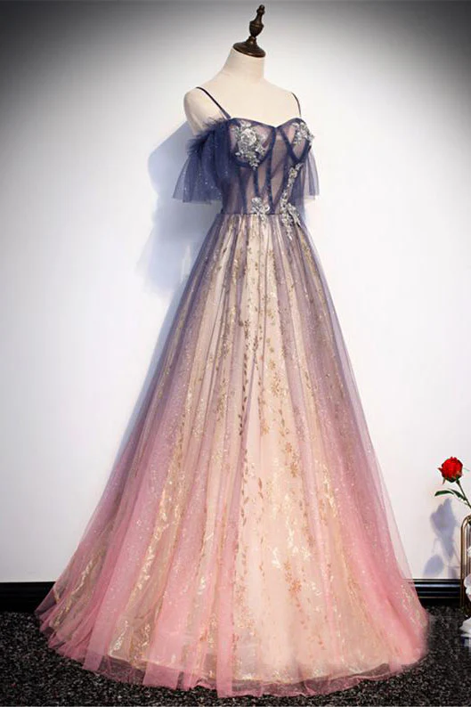 • Gradient Purple Pink Prom Dress Lace Up Evening Dress A-line Senior Prom Dress OKW1