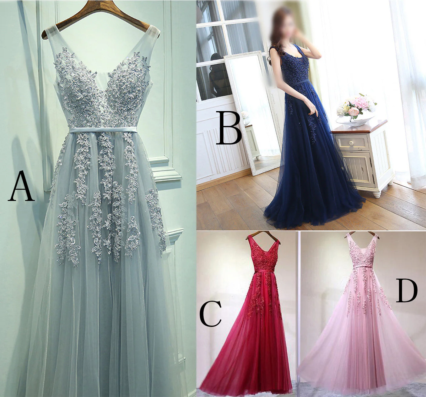 • Gray Tulle Long V-neck Evening Dress A Line Appliqued Prom Dress OKP166