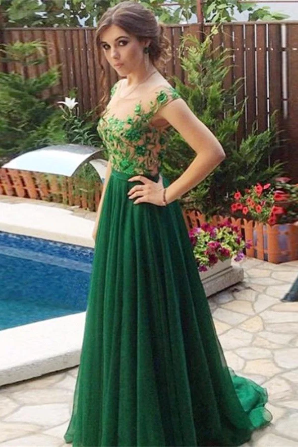 Green Long A-line Lace High Low Handmade Simple Cheap Prom Dress K636