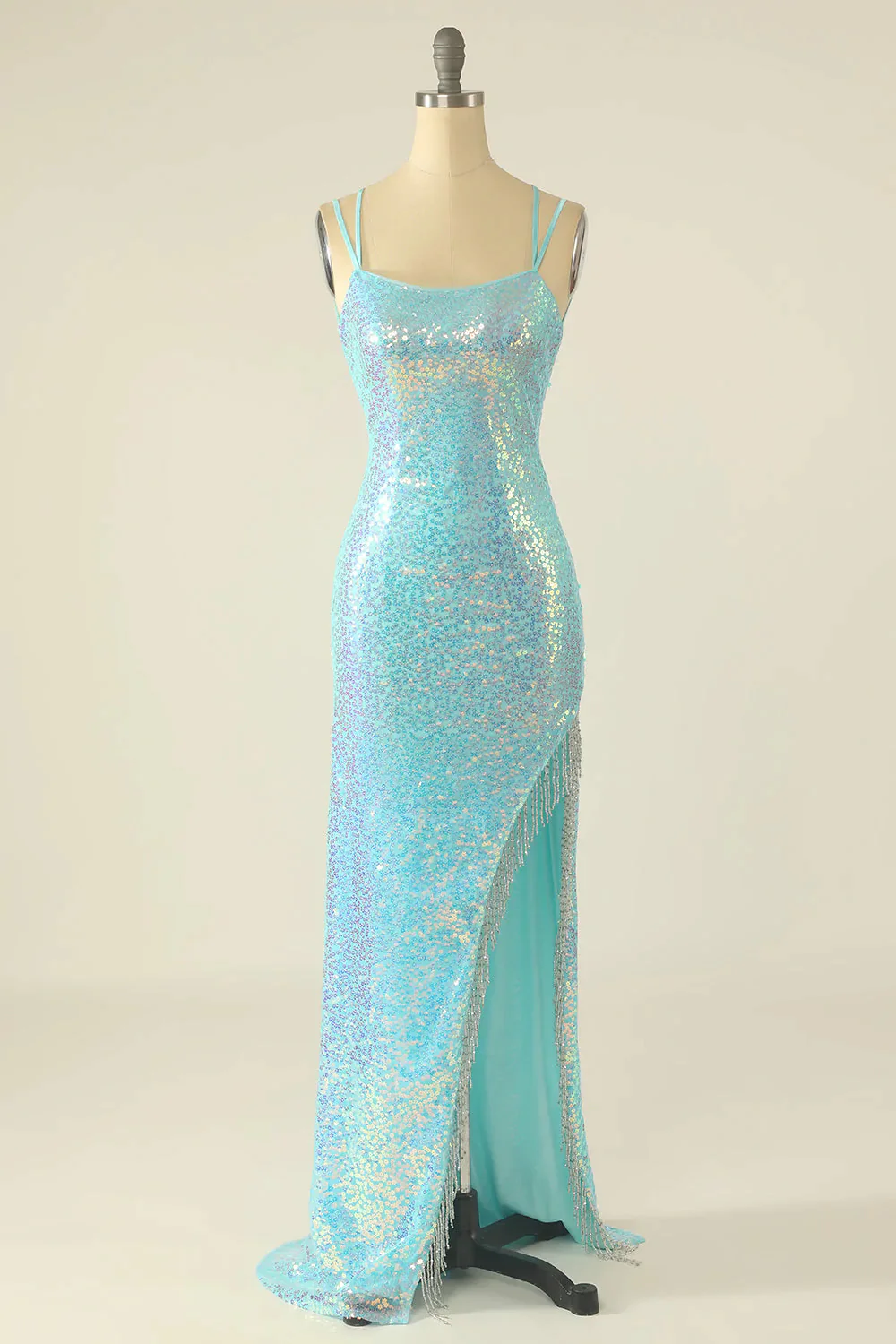 • Lavender Sequin Sheath Long Prom Dress with Fringes Formal Evening Dress OK1635