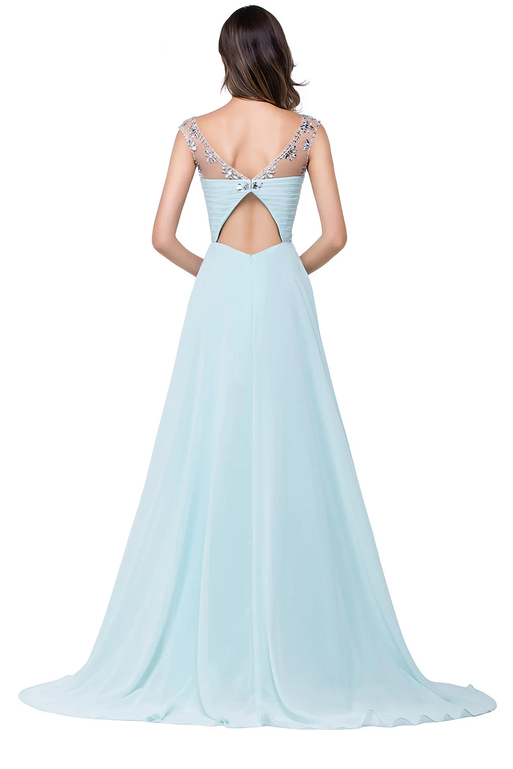 Light Sky Blue Backless Chiffon Long Beaded Prom Dress OK1