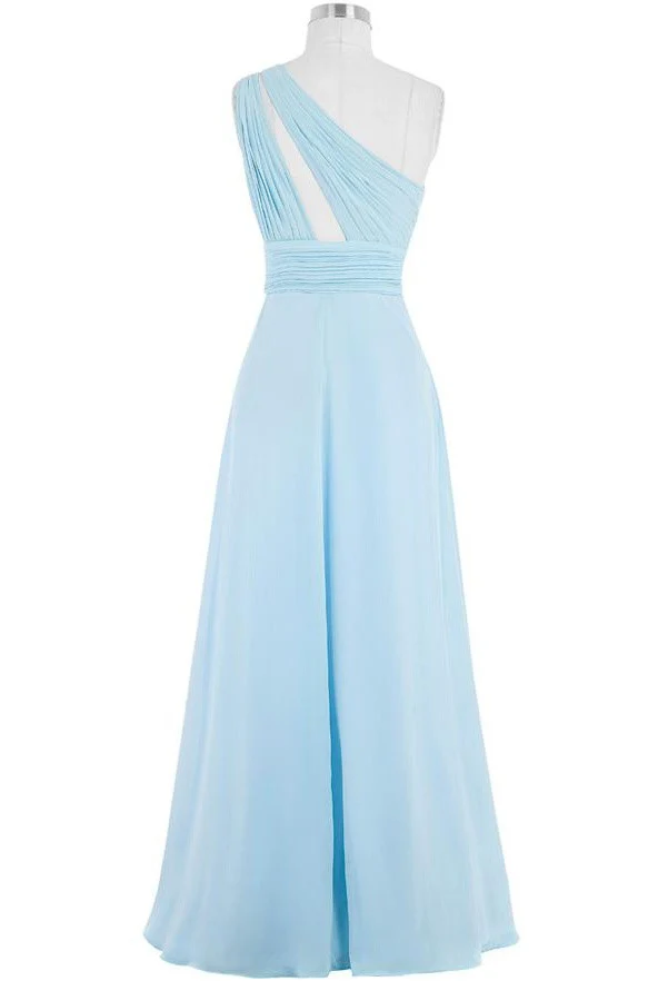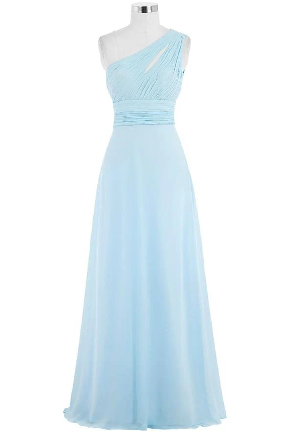 • Light Sky Blue One Shoulder Long Chiffon Plus Size Cheap Prom Dress K749