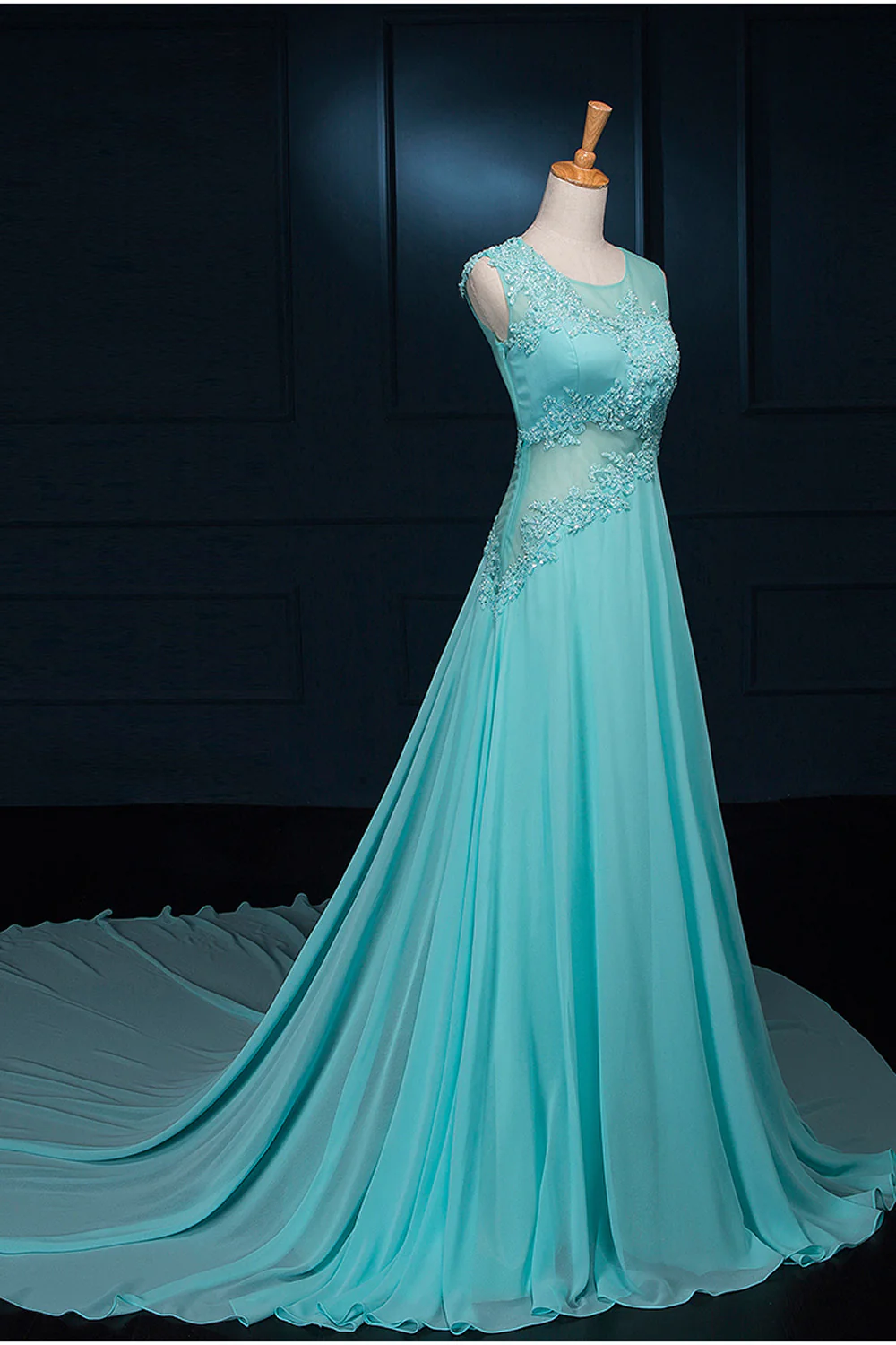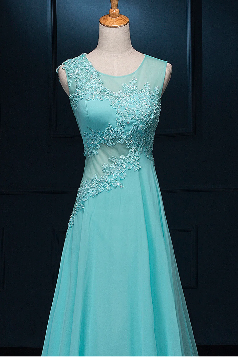 Long Lace Beaded Chiffon Modest Empire Prom Dresses ED0718