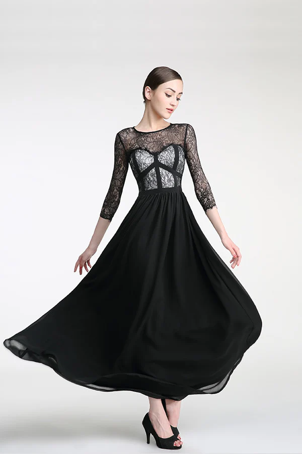 Long Sleeves Black Cap Sleeves Lace Prom Party Dress ED0830