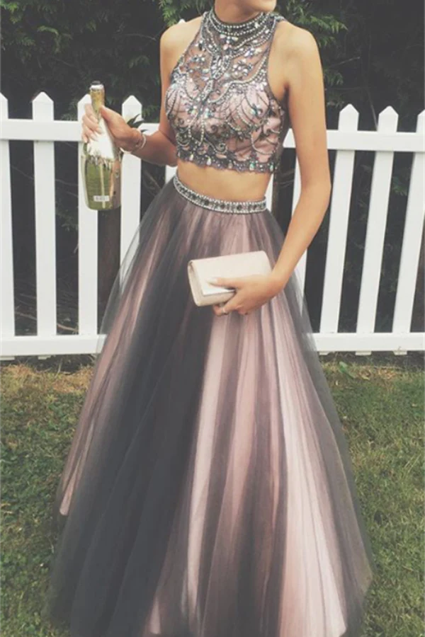 • Lovely Two Pieces Colorful Beading A-line Long Handmade Prom Dress K702