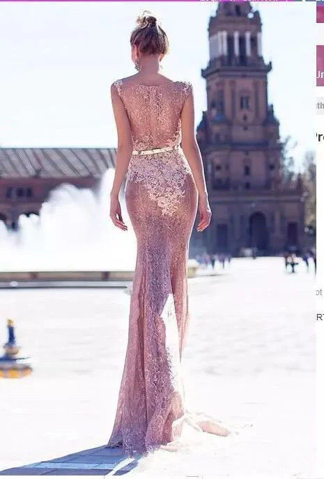 Mermaid Lace Long Prom Dresses, Elegant Bateau Evening Dresses OKG23