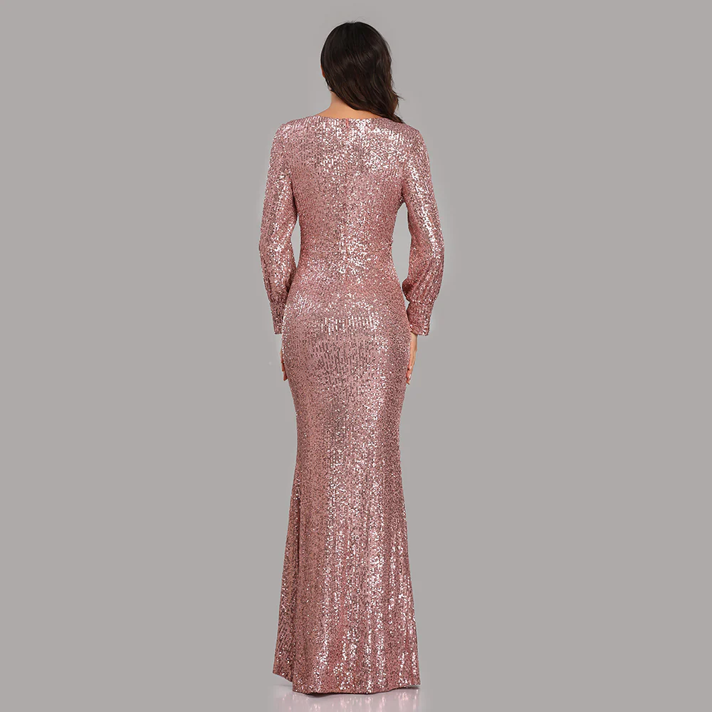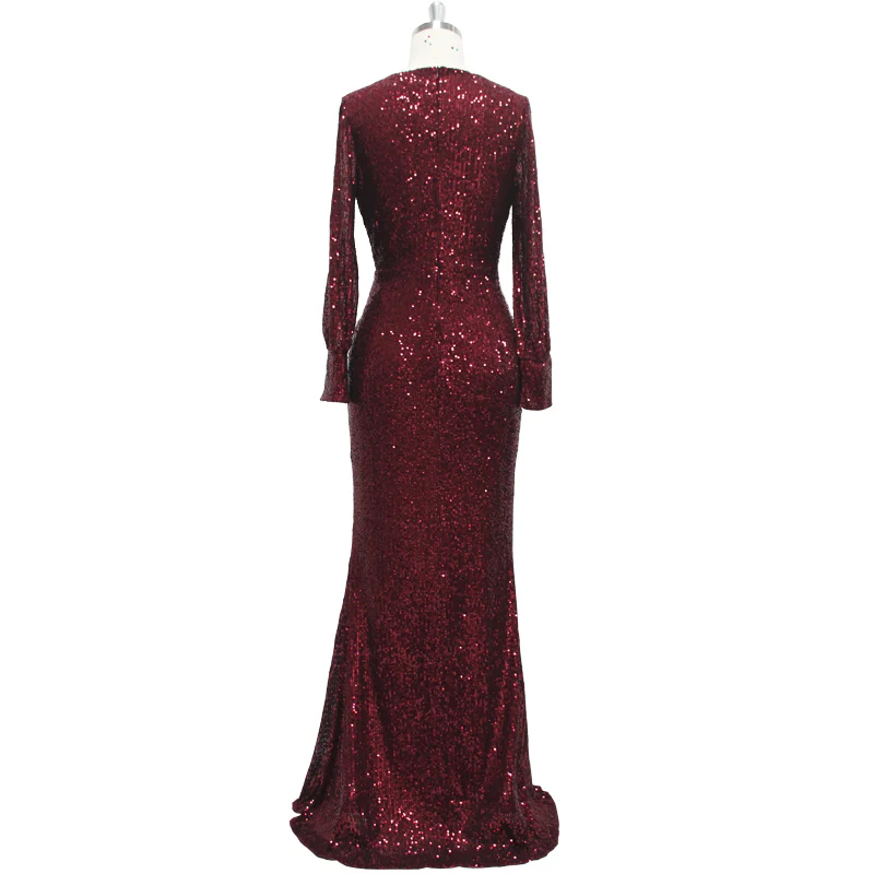 • Mermaid Sequined Long Sleeves V Neck Prom Dress XU90814