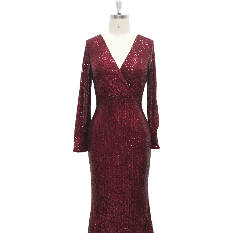 Mermaid Sequined Long Sleeves V Neck Prom Dress XU90814