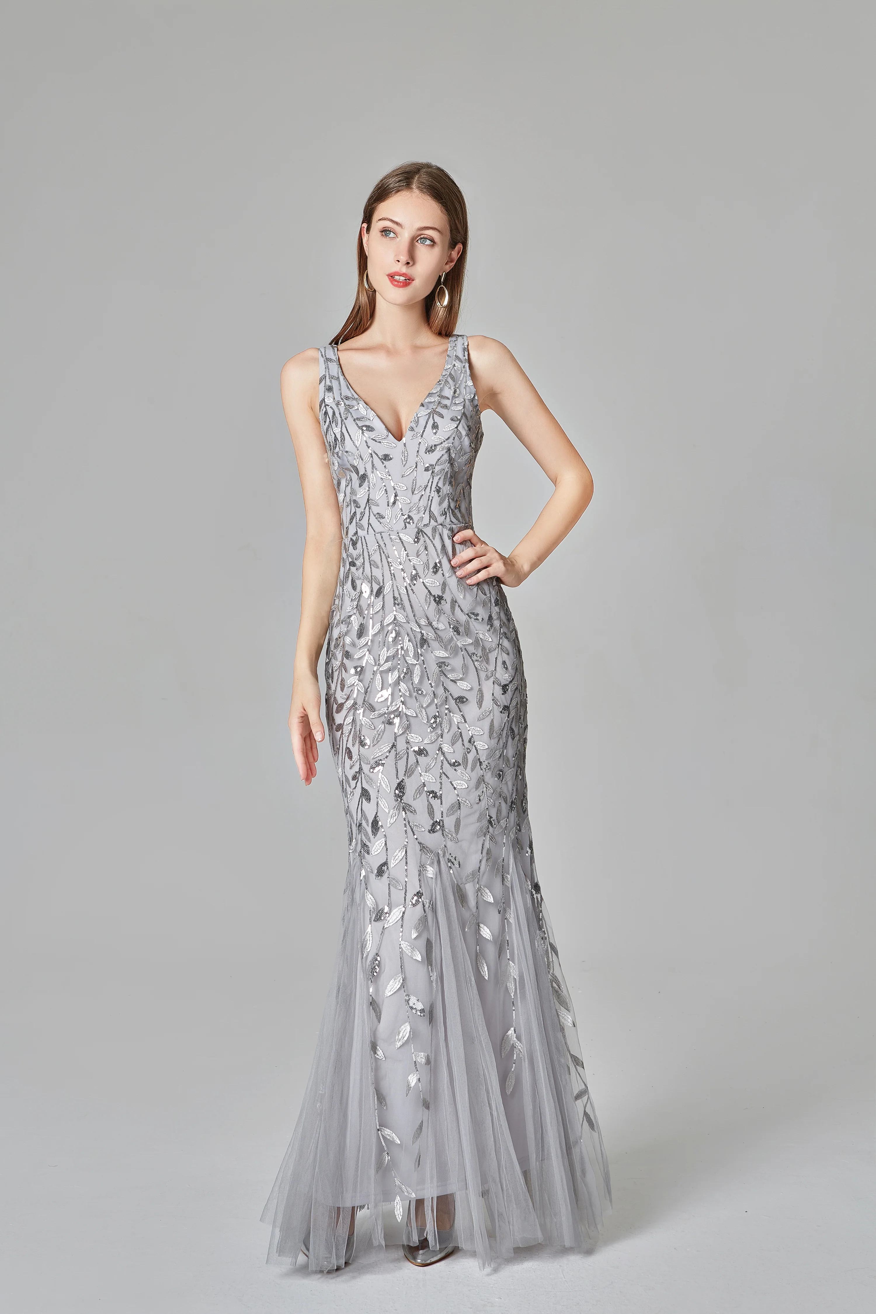Mermaid Sexy V neck Long Prom Dress, Cheap Formal Dress XU90803