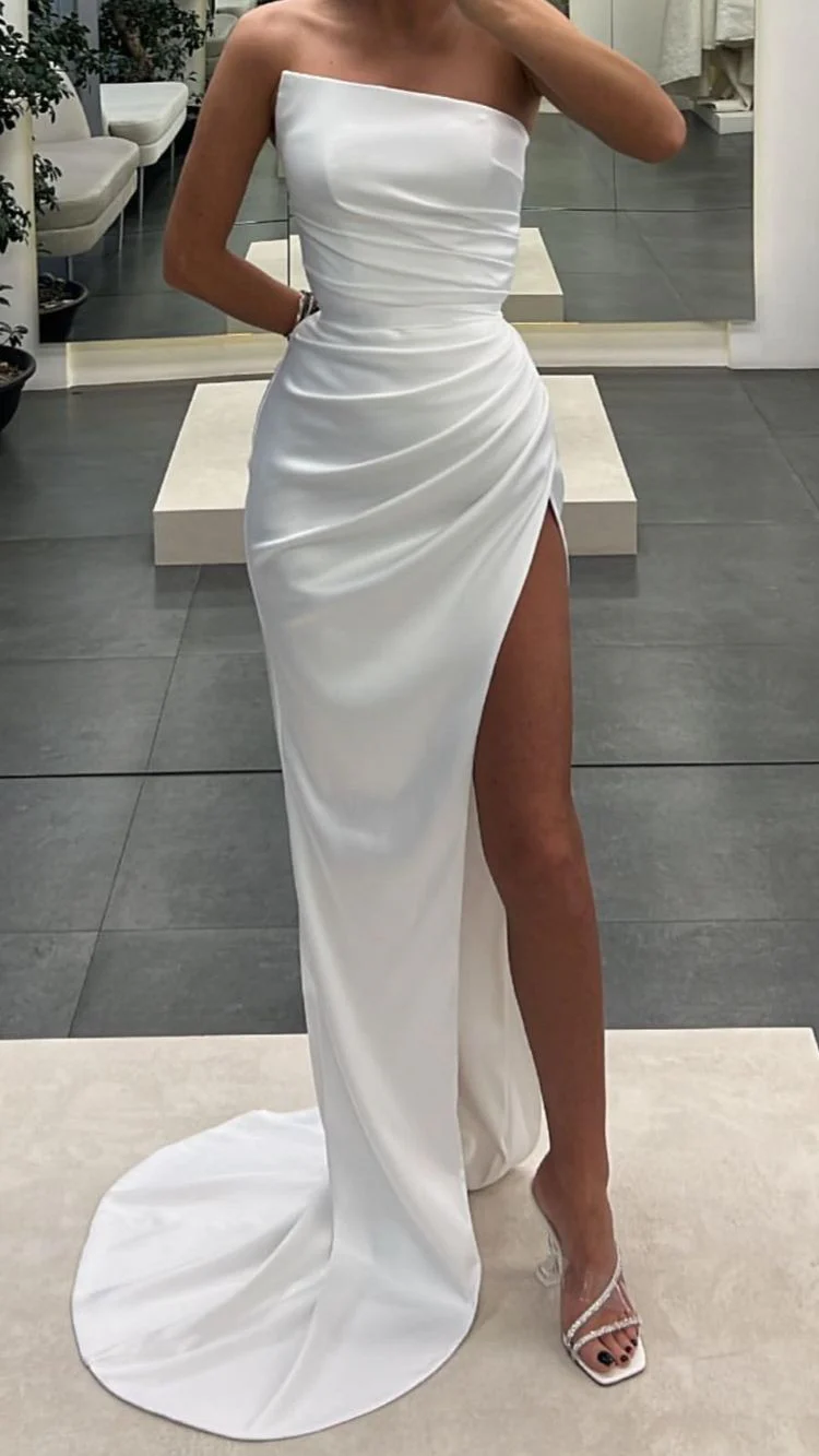 • Mermaid Strapless Sexy Slit Long Prom Dresses Chic Evening Dresses OK1557