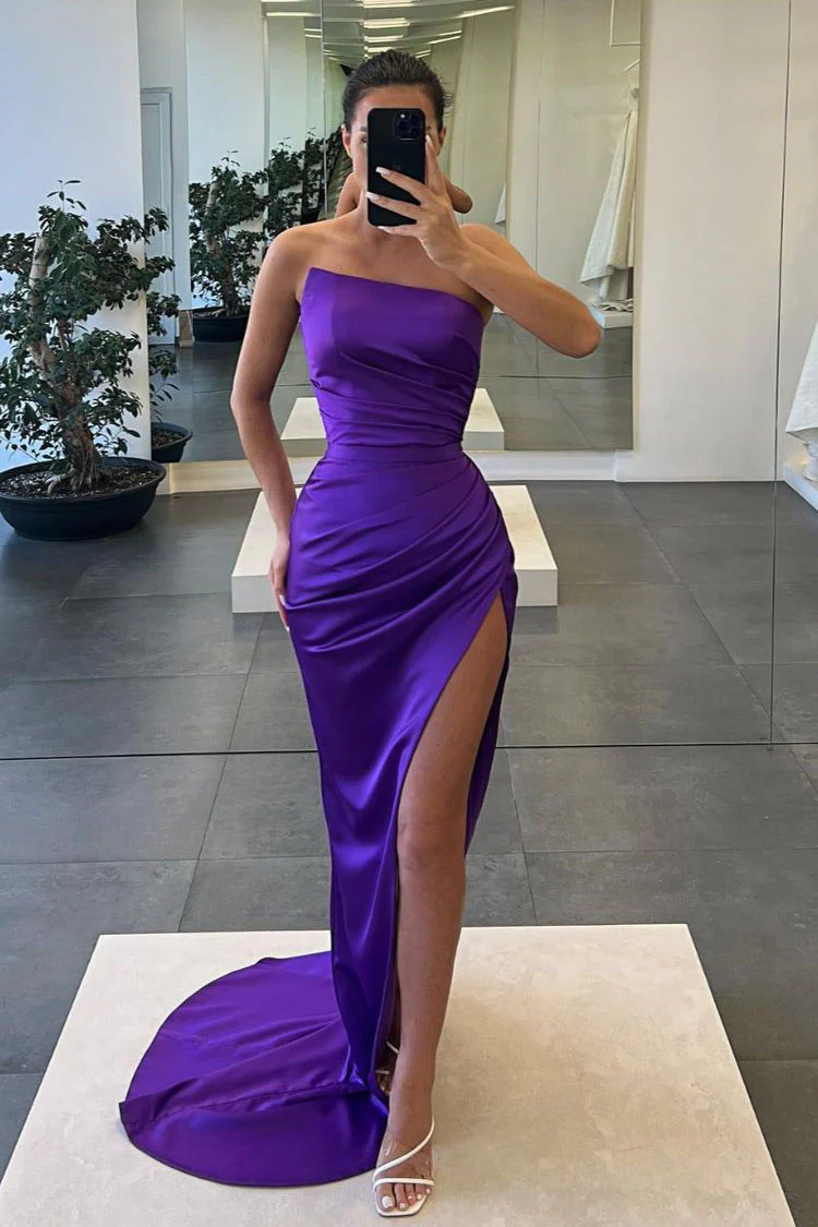 Mermaid Strapless Sexy Slit Long Prom Dresses Chic Evening Dresses OK1557