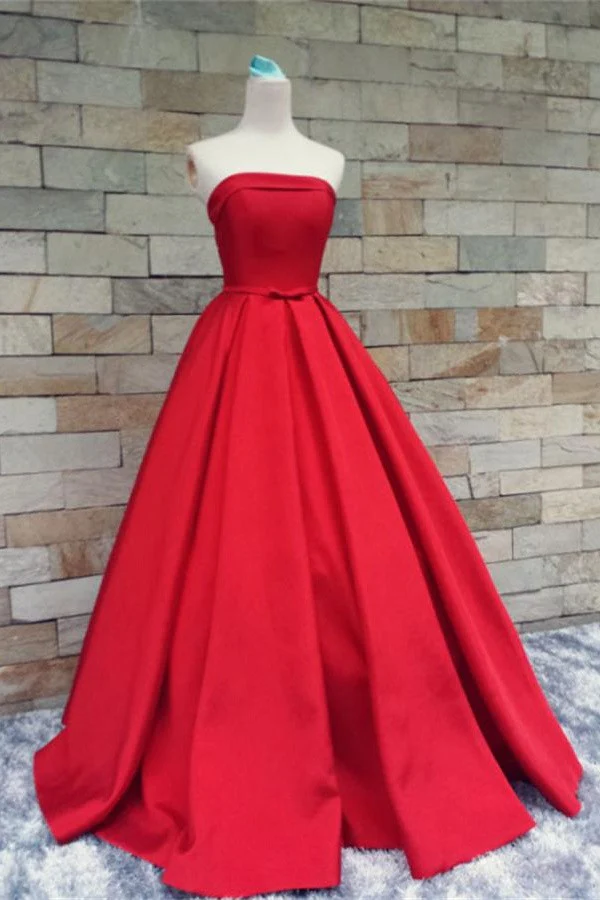 • Modest Light Red Strapless Long Beautiful Handmade Satin Prom Dress K174