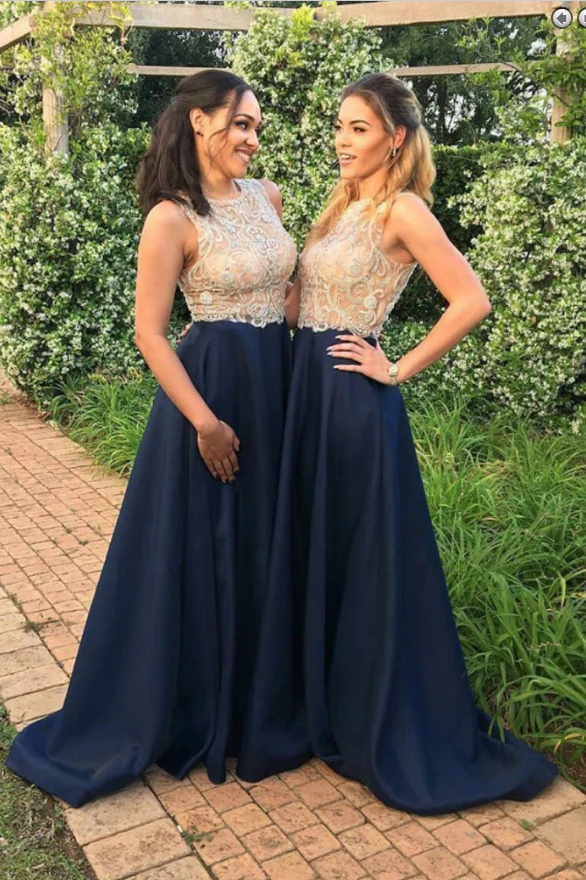 • Navy Blue Long Cheap Beaded Prom Dresses,New A Line Bridesmaid Dress OK873