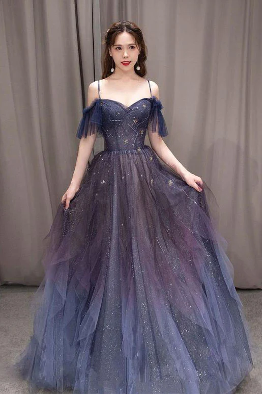 Ombre A Line Dark Purple Tulle Long Prom Dress Evening Party Dress OK1162