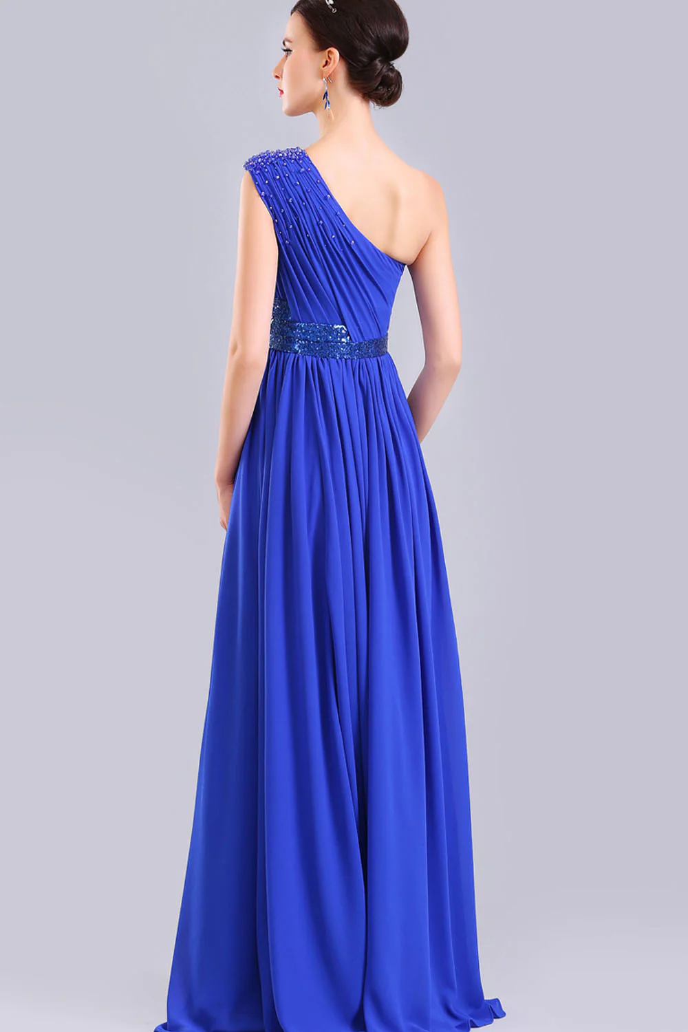 • One Shoulder Chiffon Long Royal Blue Simple Prom Dress ED0852
