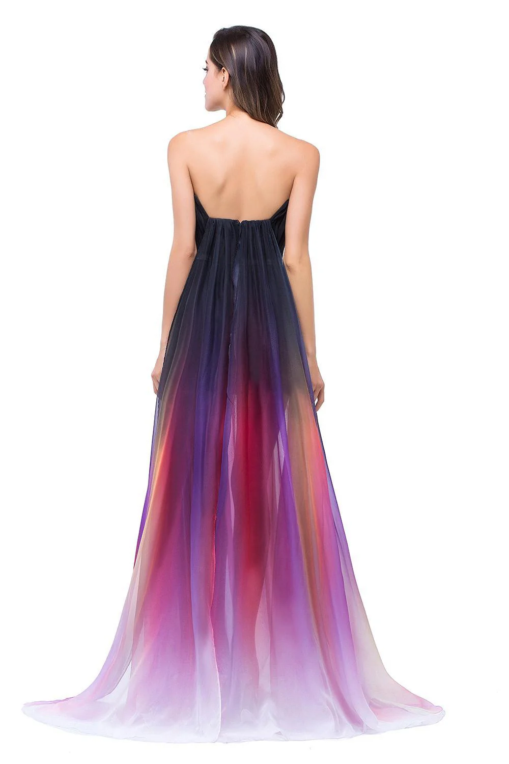 • Open Back Long Gradient Chiffon Modest Prom Dress OK2