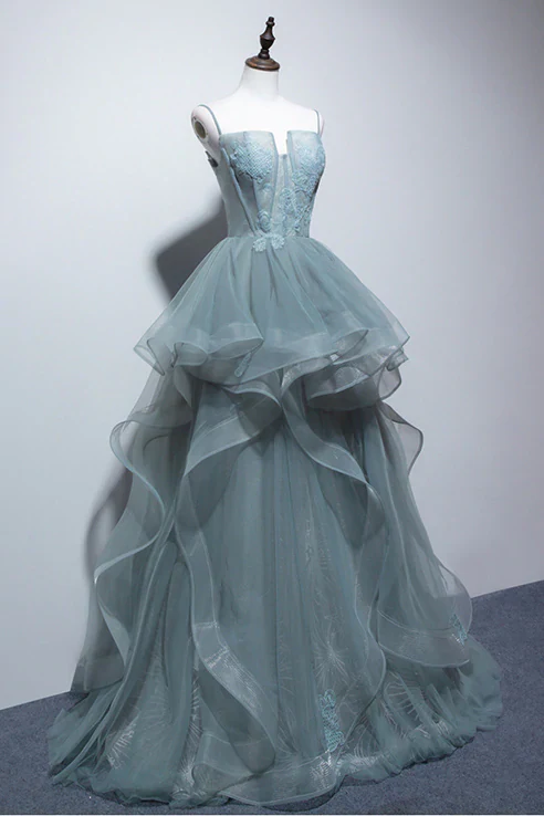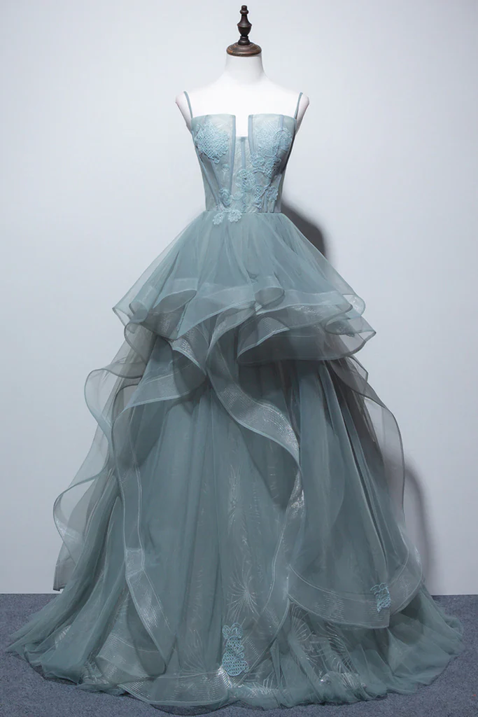 • Princess Spaghetti Straps Tulle Long Formal Prom Dress Formal Evening Party Dress OK1383