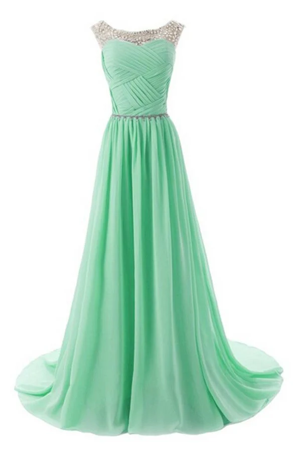 Real Beautiful Mint Long Chiffon Beading Elegant Prom Dress K172