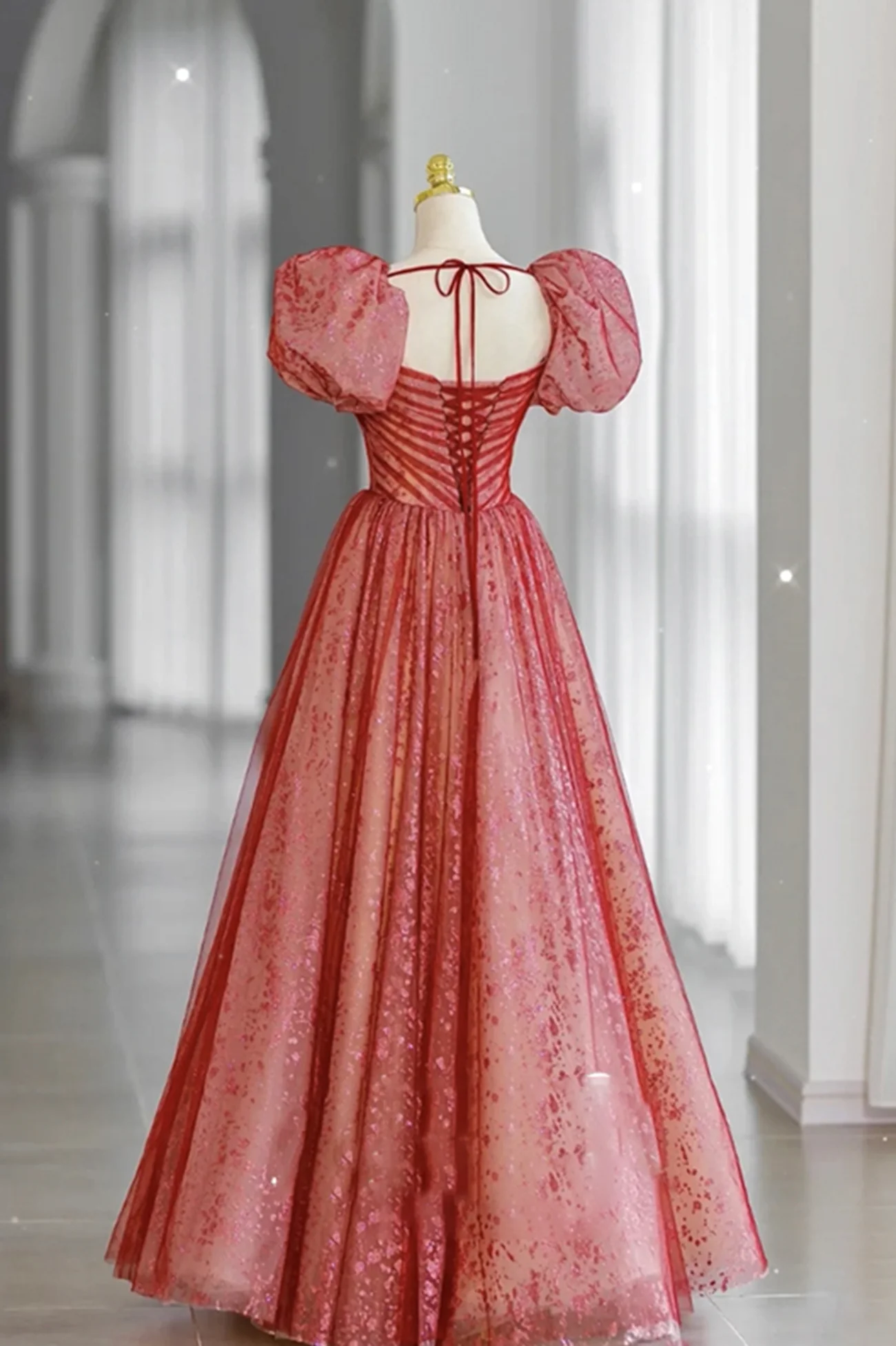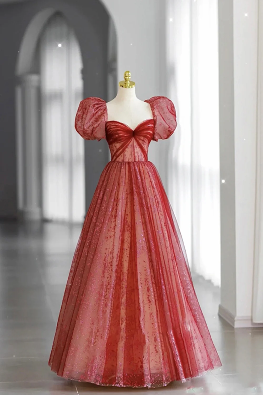 • Red A Line Tulle Sweetheart Neck Long Prom Dress Formal Evening Dress OK1388