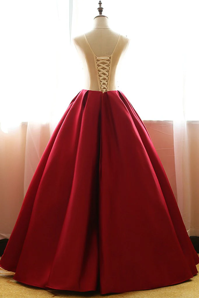 • Red Quinceanera Dresses,Floral Satin Aline long Appliques Ball Gown Prom Dress OK240