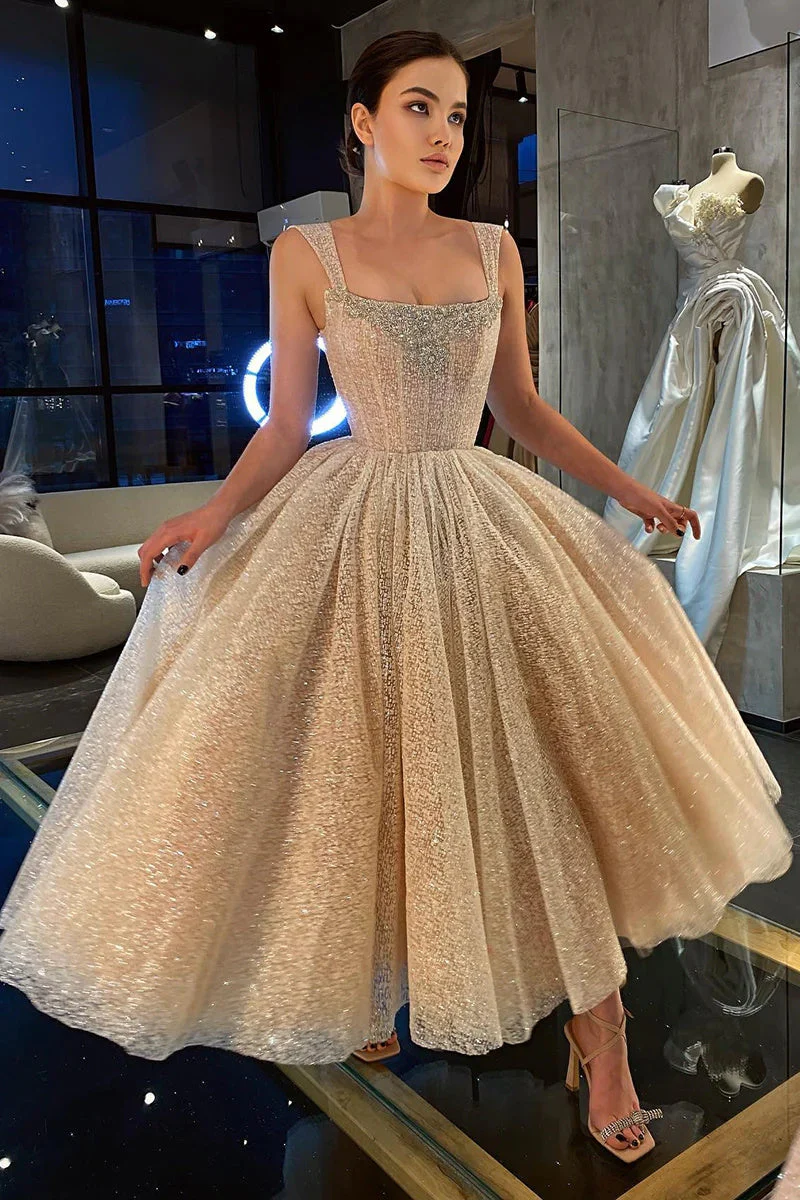 • Shiny Square Neck Ball Gown Prom Dress Princess Evening Dress OK1610