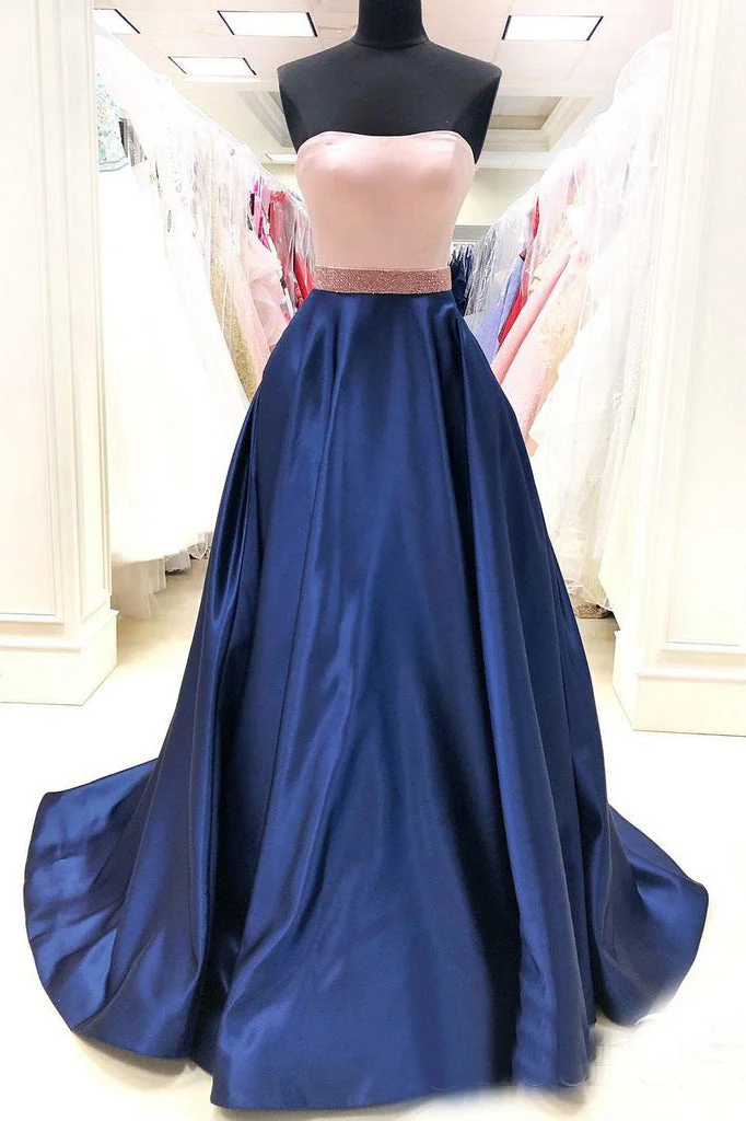 • Simple Royal Blue Satin A-line Long Prom Dress with Pockets OKS81