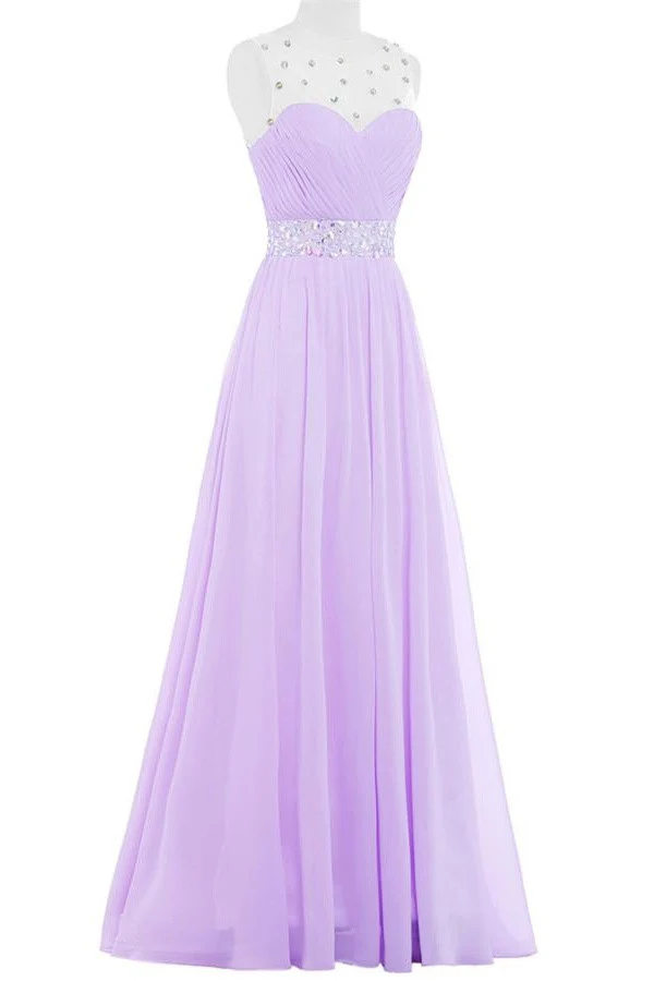 • Simple Violet Chiffon Beading Cheap Elegant Long High Low Prom Dress K741