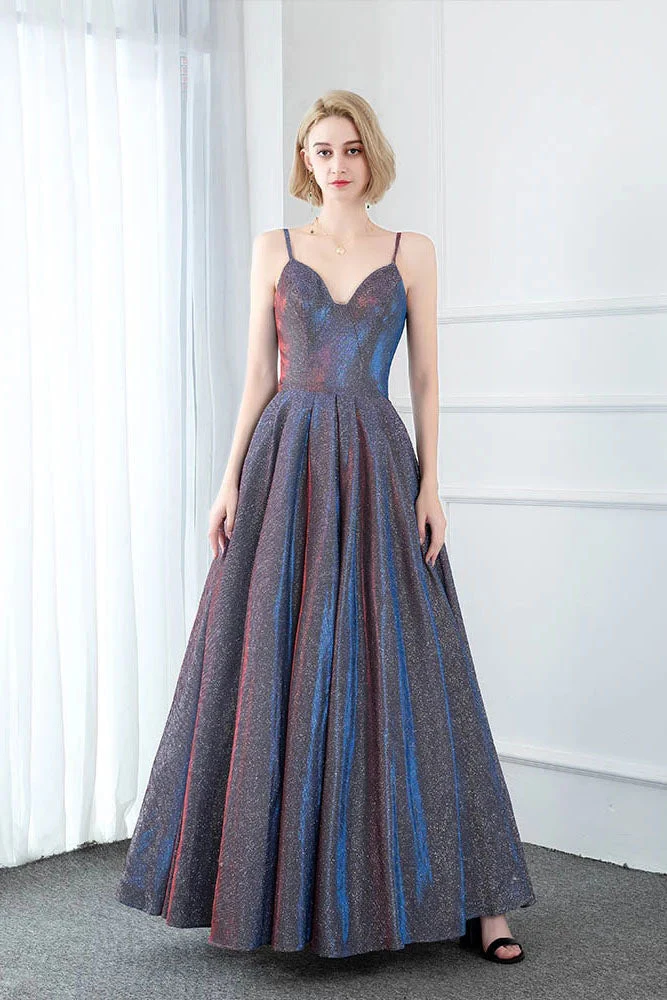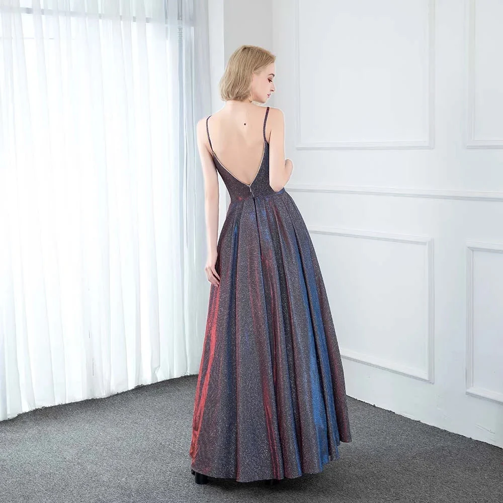• Gitters Spaghetti Straps Long Prom Dress Backless Formal Party Gowns For Women OKW74