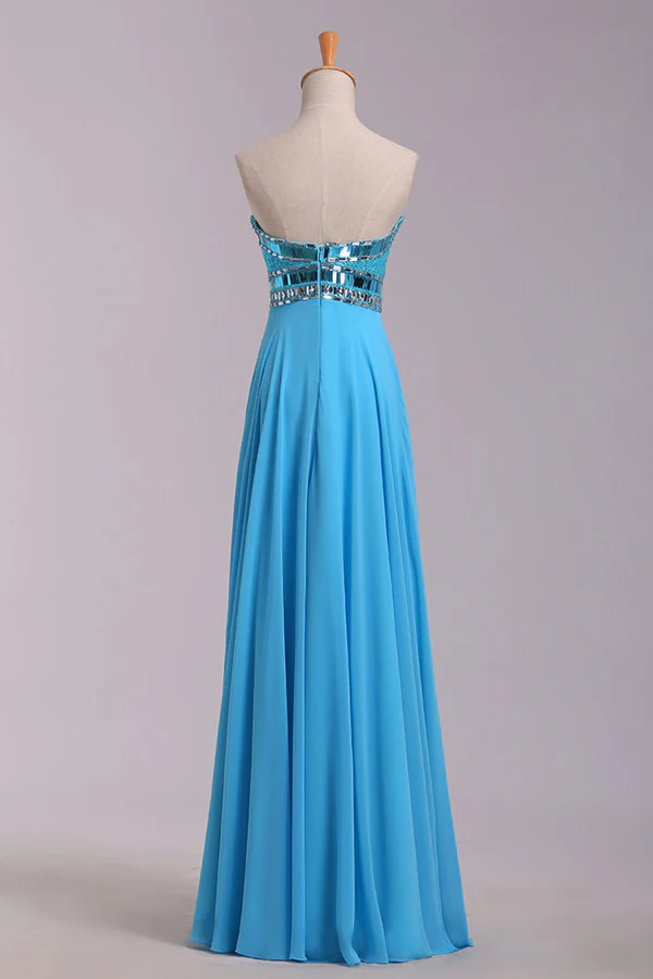 • Strapless Long Beaded Open Back Chiffon Modest Prom Dress OK36