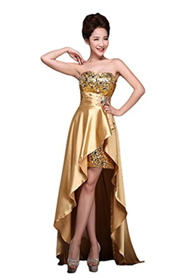 • Sweetheart Gold Long Beading Handmade Prom Dresses Evening Dresses K681