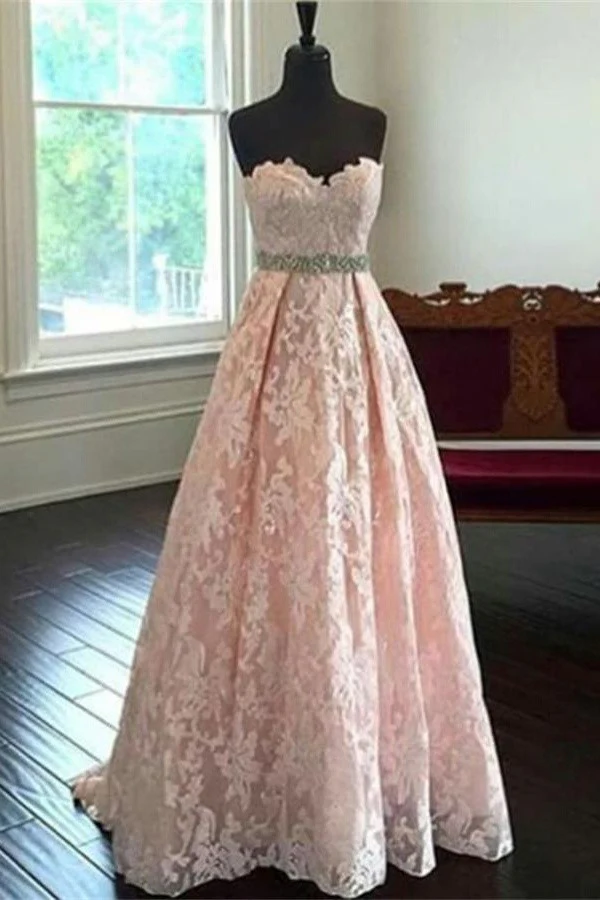• Sweetheart Lace Beading Long A-line Pink Handmade Cheap Prom Dress K691