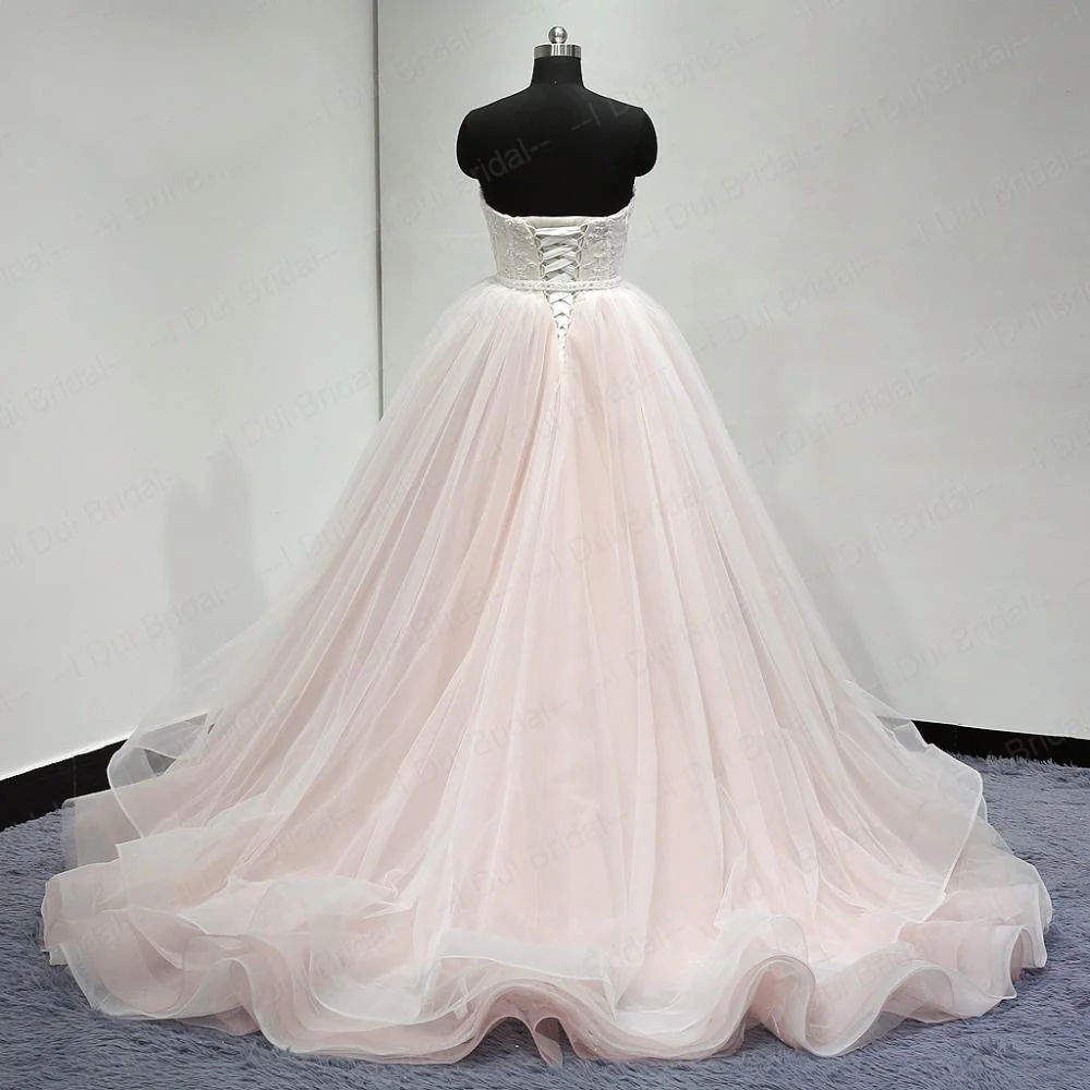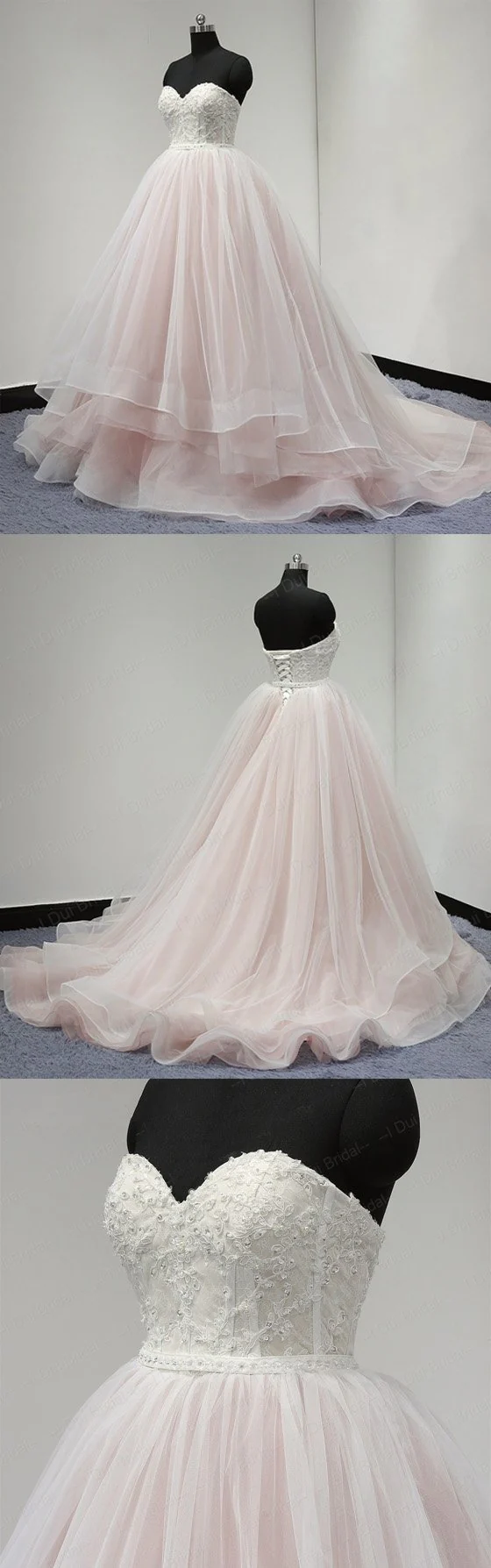 Sweetheart Lace Up Back Charming Affordable Long Pearl Pink Prom Dress Ball Gown OK624