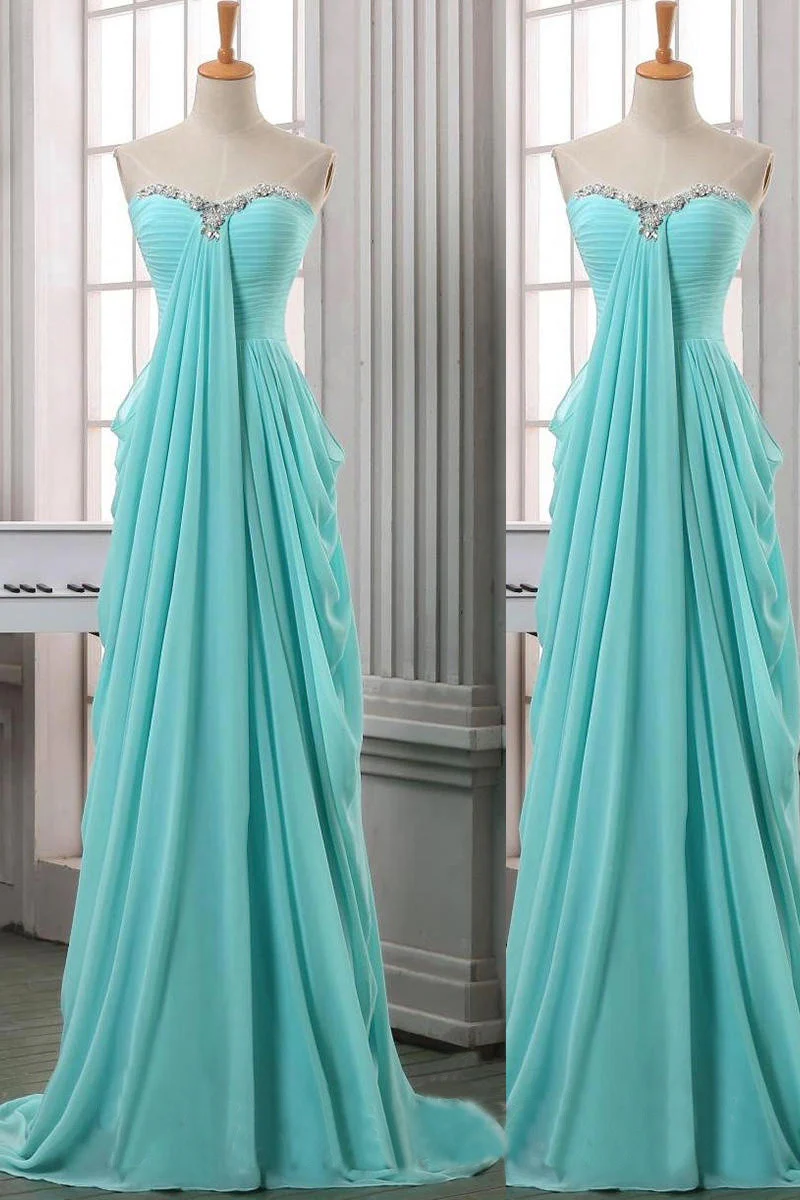 • Sweetheart Long Chiffon Beading Elegant Cheap Prom Dress OK12