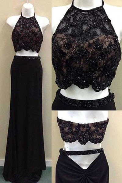 • Two piece black long Sexy Beading Lace chiffon prom/evening dress OK230