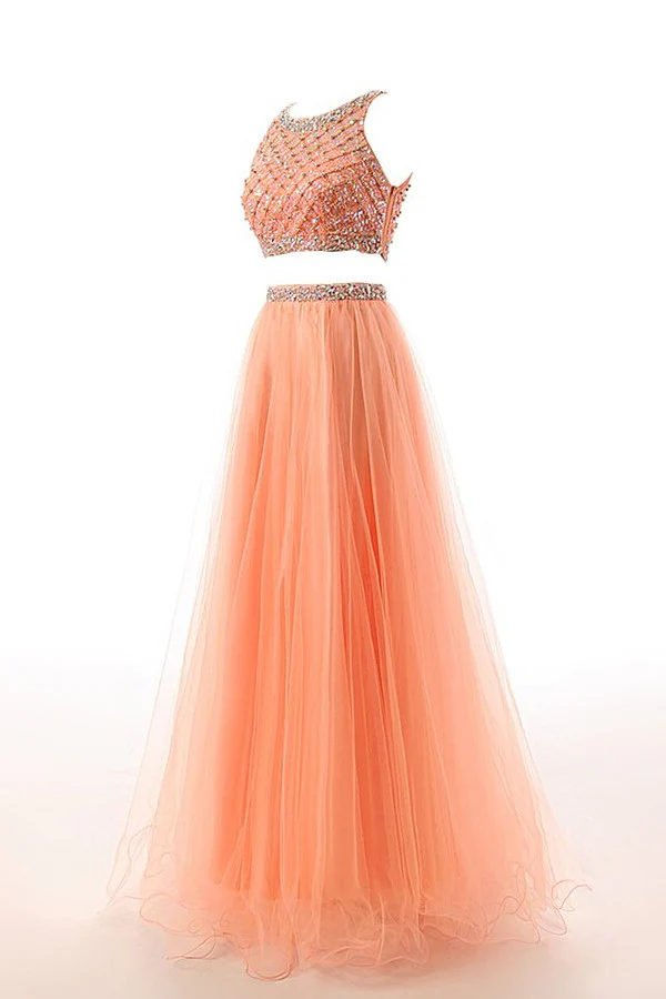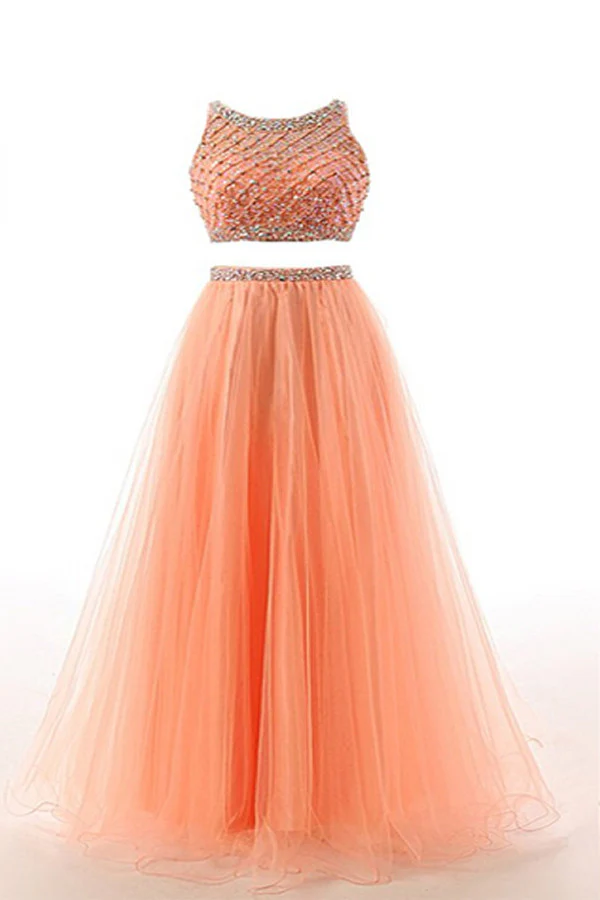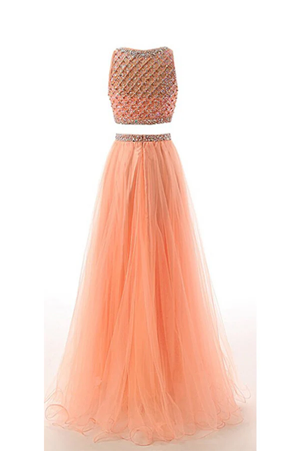 • Two Pieces Orange Red Beaded Long Prom Graduation Dress ED0965